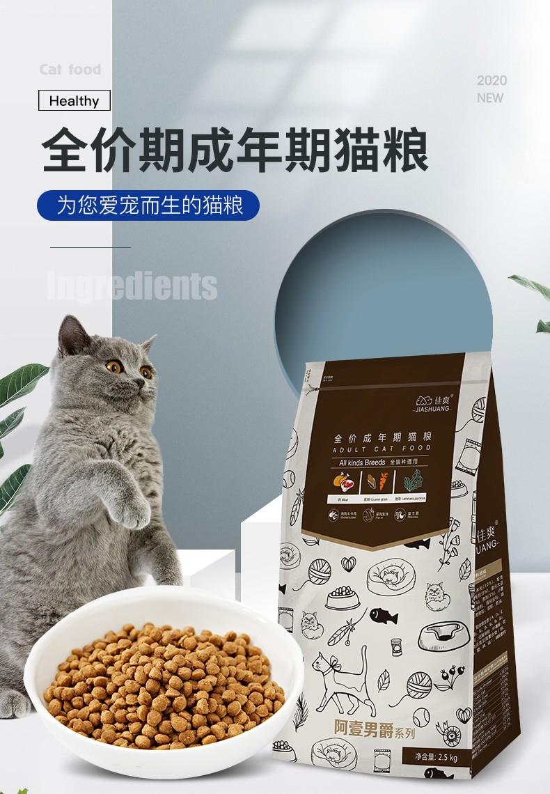 佳爽,一个新生且具有发展力的品牌,致力于研发健康、美味、营养、安全的高端宠物食品,它的出现并不是一时冲动,而是专业团队经过长时间考察、研究与测试,以世界著名品牌配方为基础,根据国内原材料、气候、宠物种类等进行整合优化才推向市场的一款负责任的宠物食品品牌。 佳爽系列产品是一款可以感知的高端营养宠物粮,采用独特工艺配方,按照营养膳食配方甄选优质天然食材,通过科学合理的有机搭配,调理机体健康,维持宠物内在平衡。含鲜肉比重超过百分之四十以上,按照人类食品安全标准执行,看得见肉粒,闻得到鲜美,低油低盐,清香气味,口感松脆,高能营养吸收,含多种宠物需要的维生素及矿物质,确保宠粮适口性的同时保证能为宠物提供均衡全面的营养。